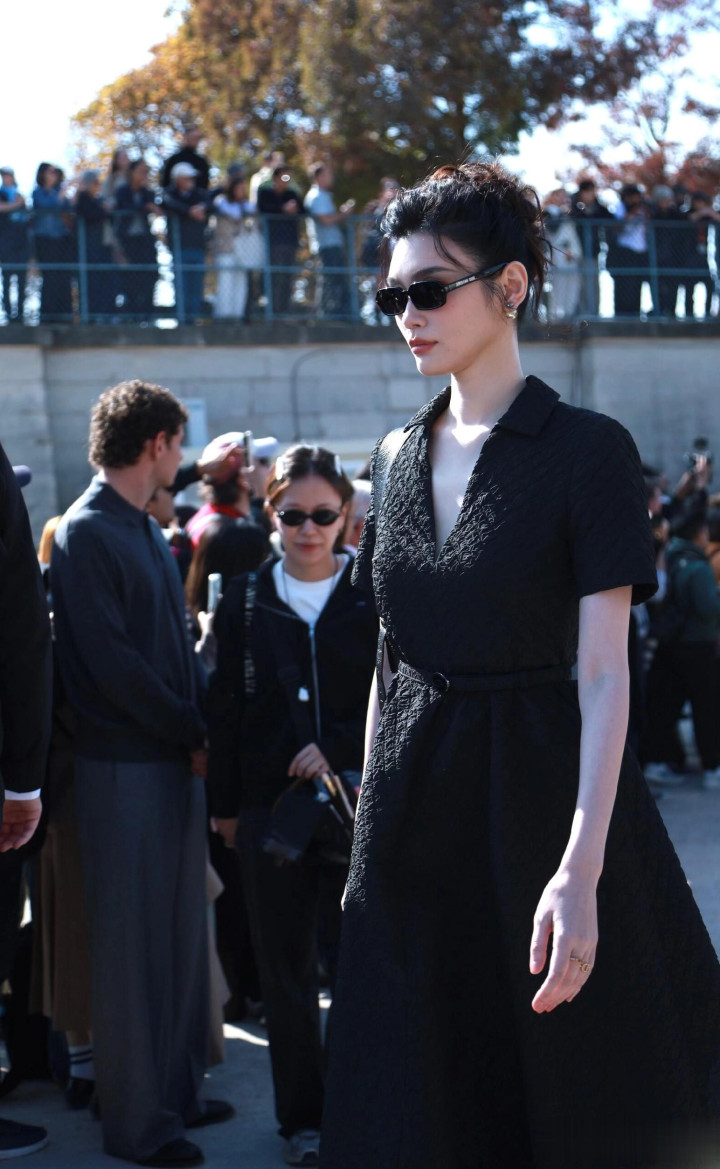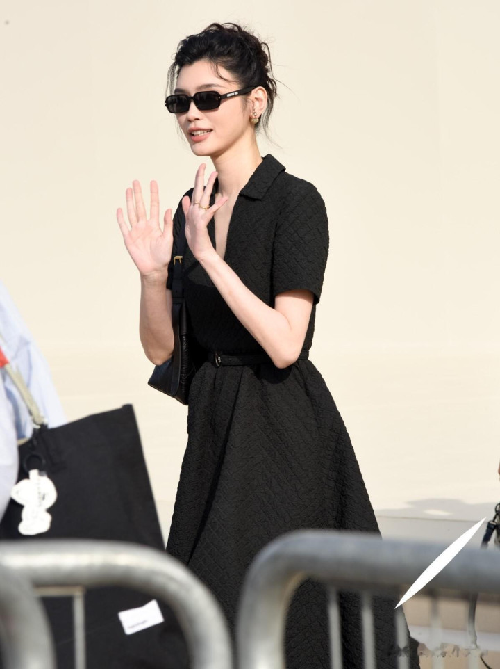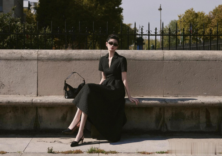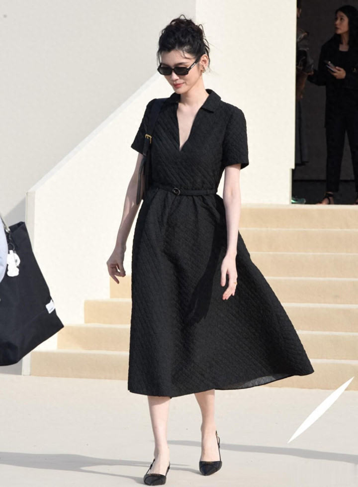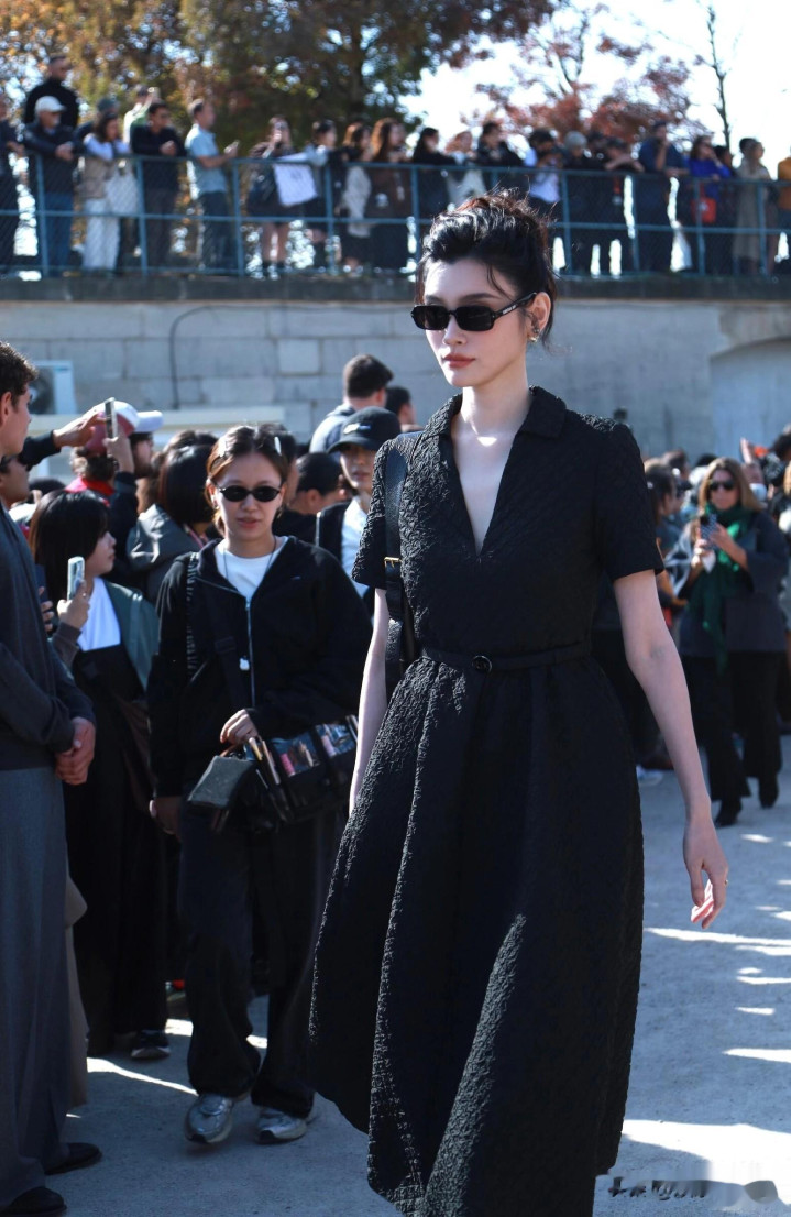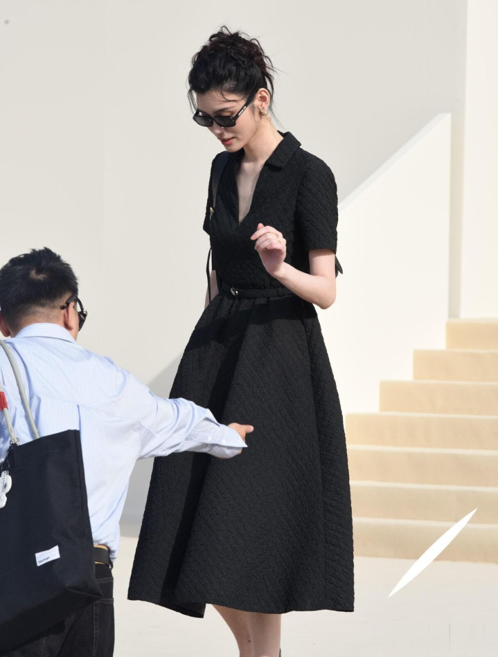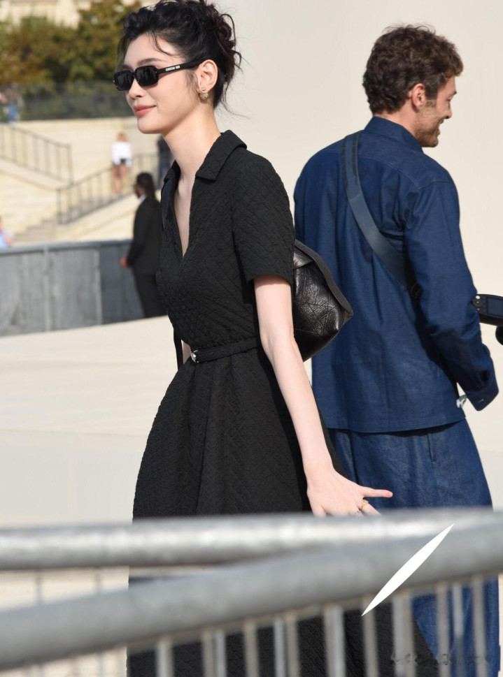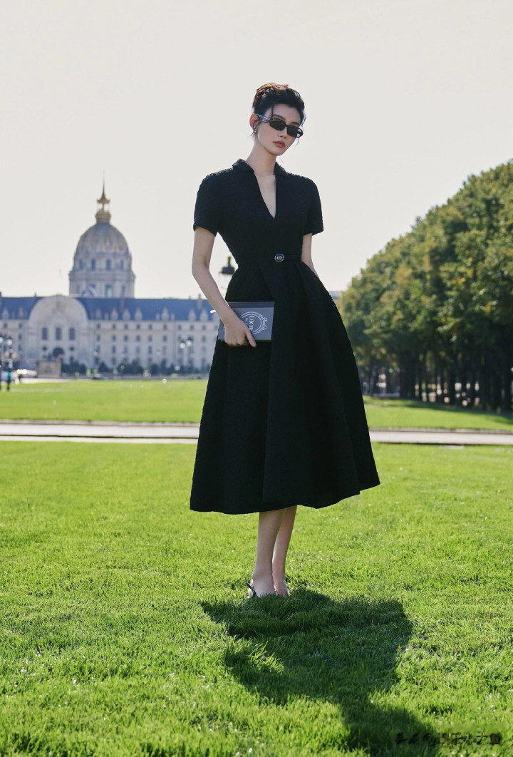 奚梦瑶出席巴黎时装周, 一袭黑色束腰连衣裙优雅气质好漂亮!