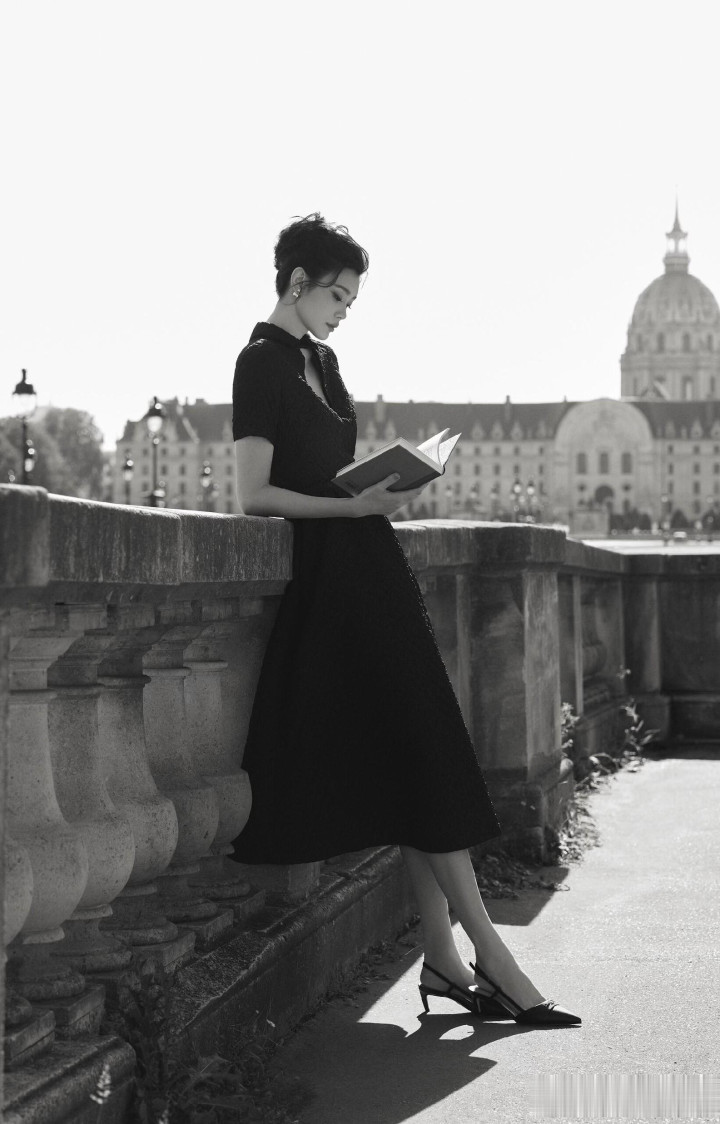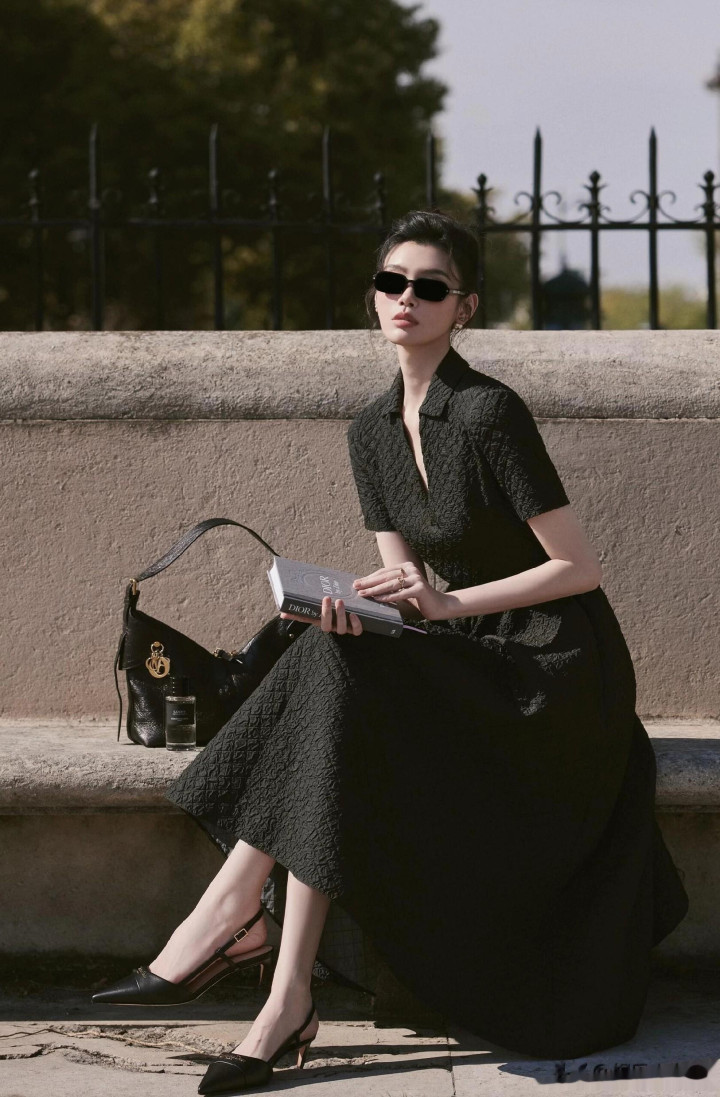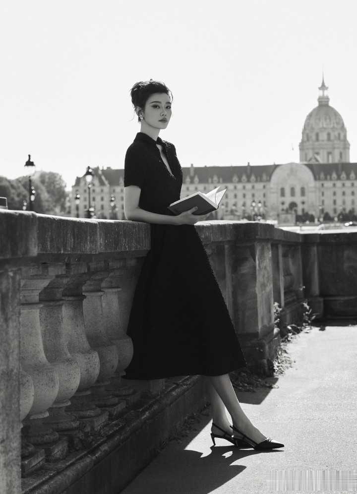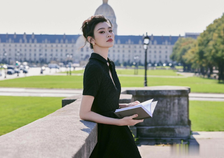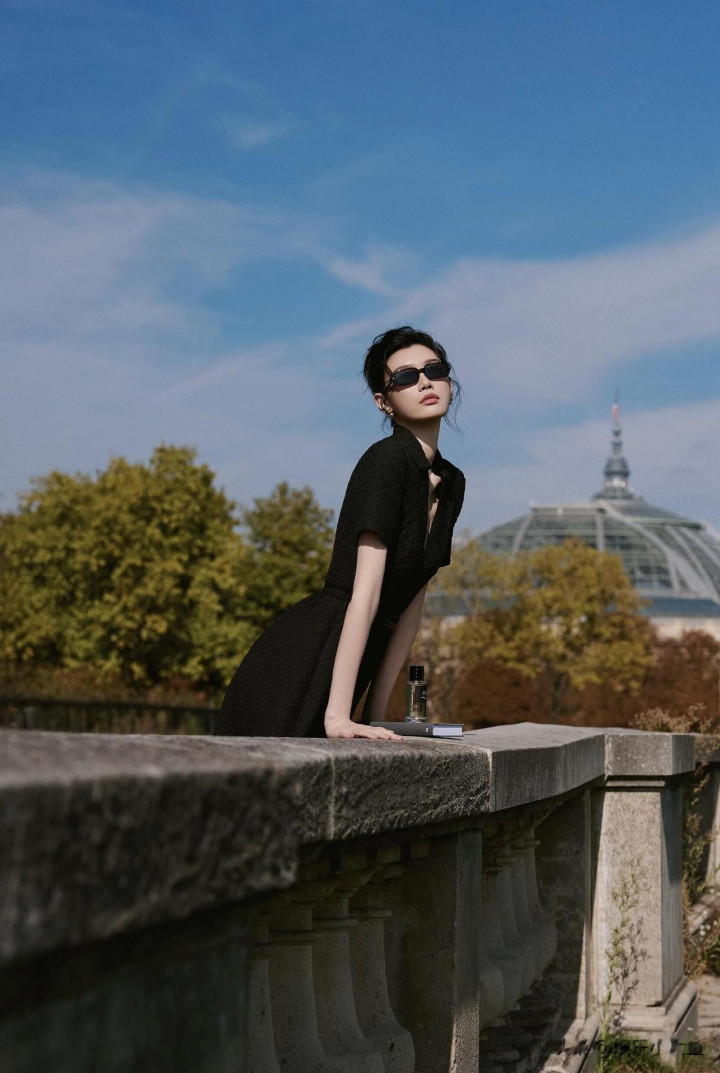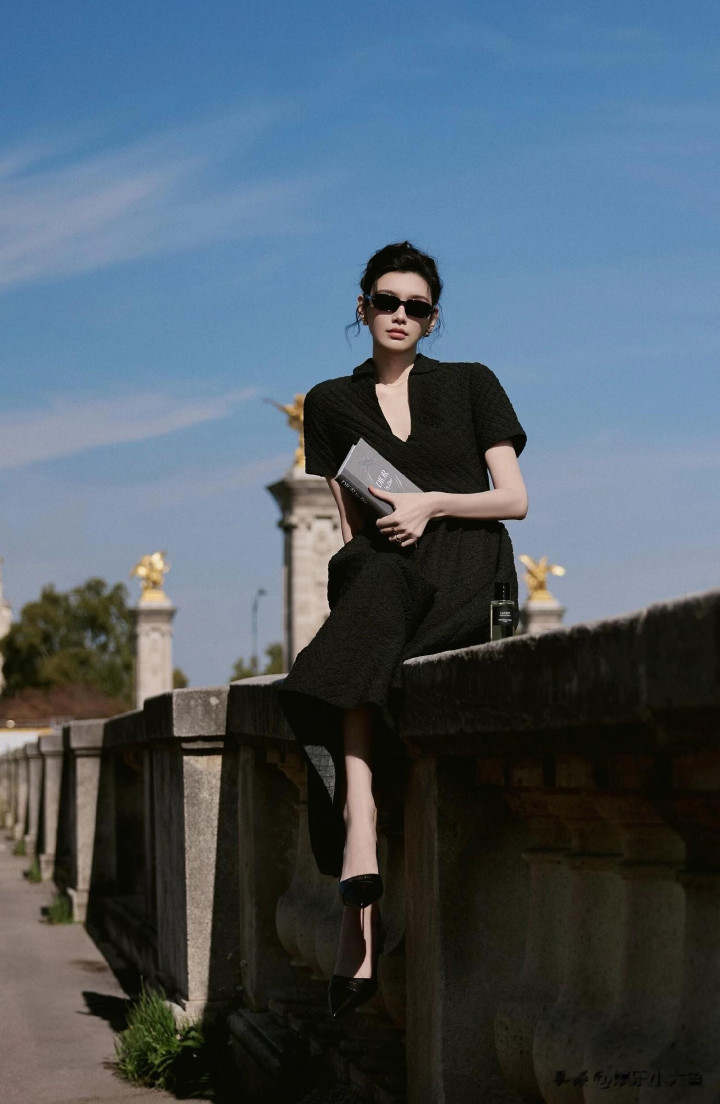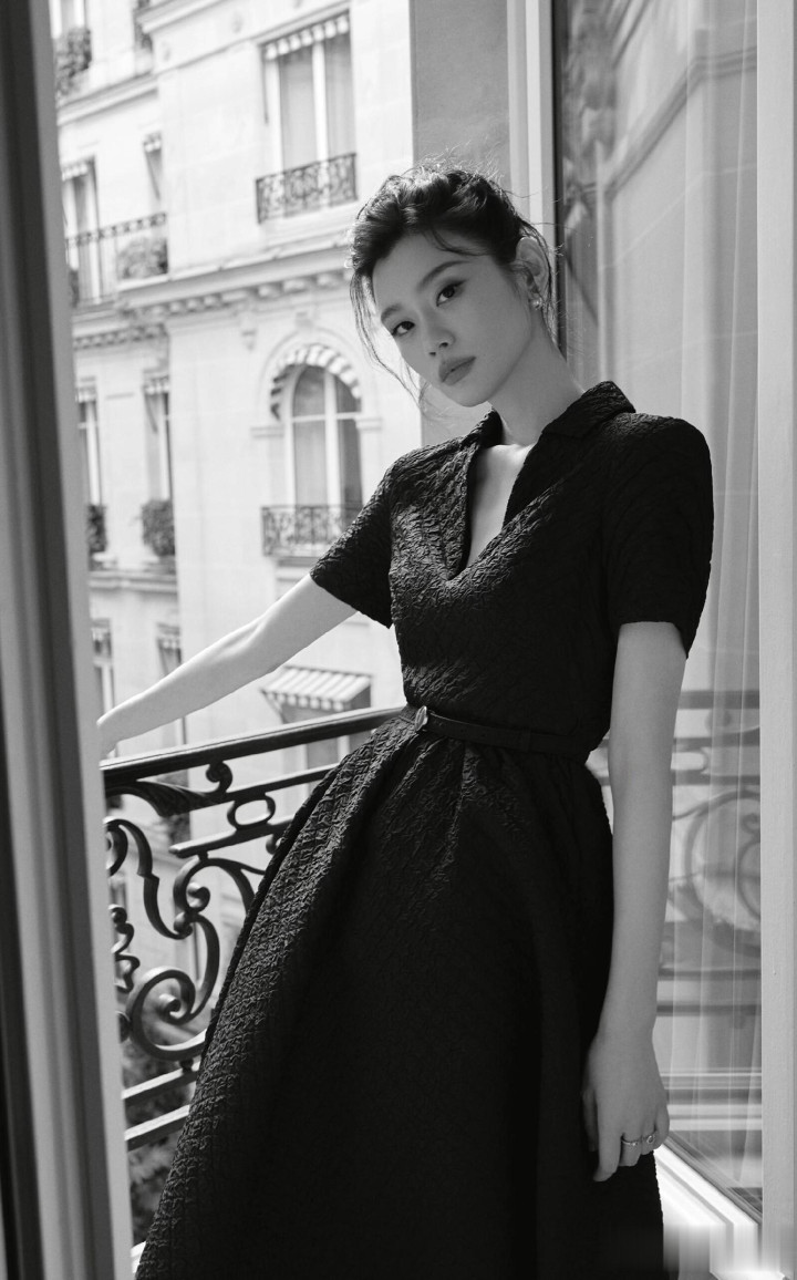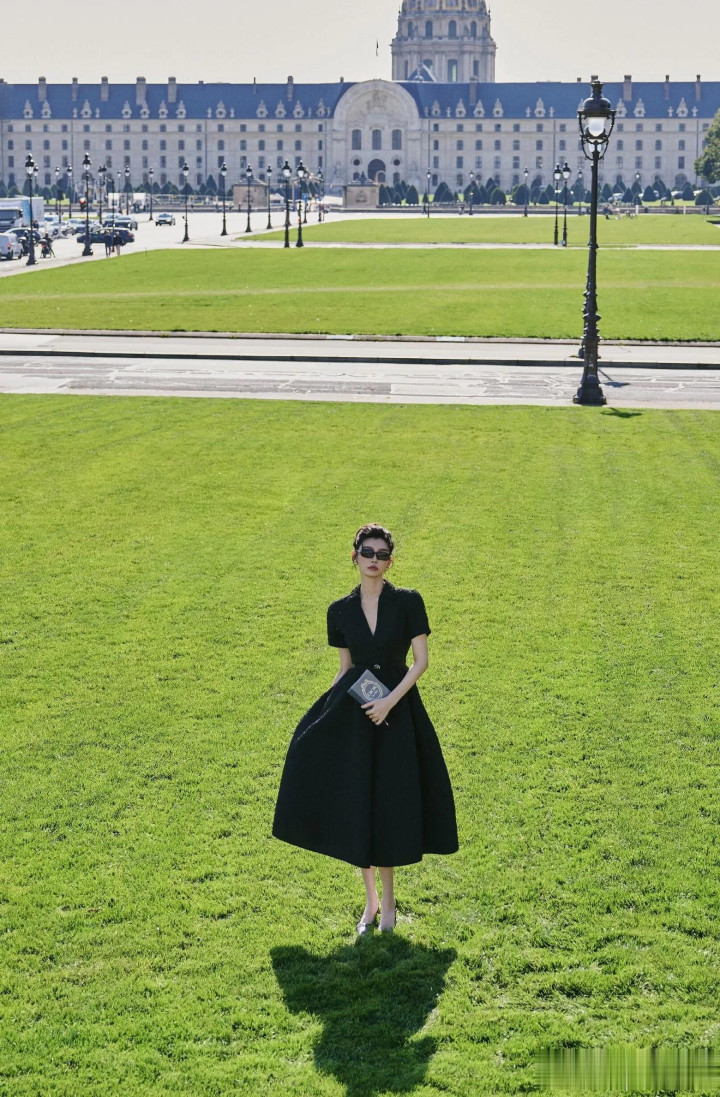 奚梦瑶出席巴黎时装周, 一袭黑色束腰连衣裙优雅气质好漂亮!