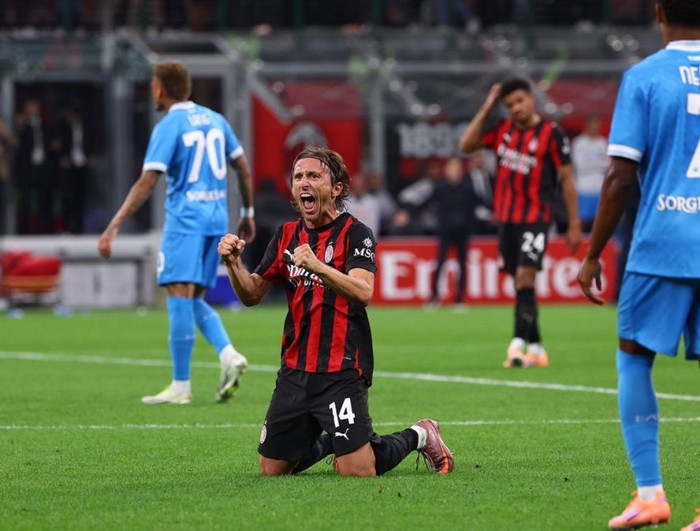 终于,裁判哨声响了,米兰完成了最后40分钟的铁血防守。2-1,米兰拿下了艰难的3分。获胜的那一刻,40岁的莫德里奇跪倒在地,紧握双拳,呐喊庆祝,场面让人动容。